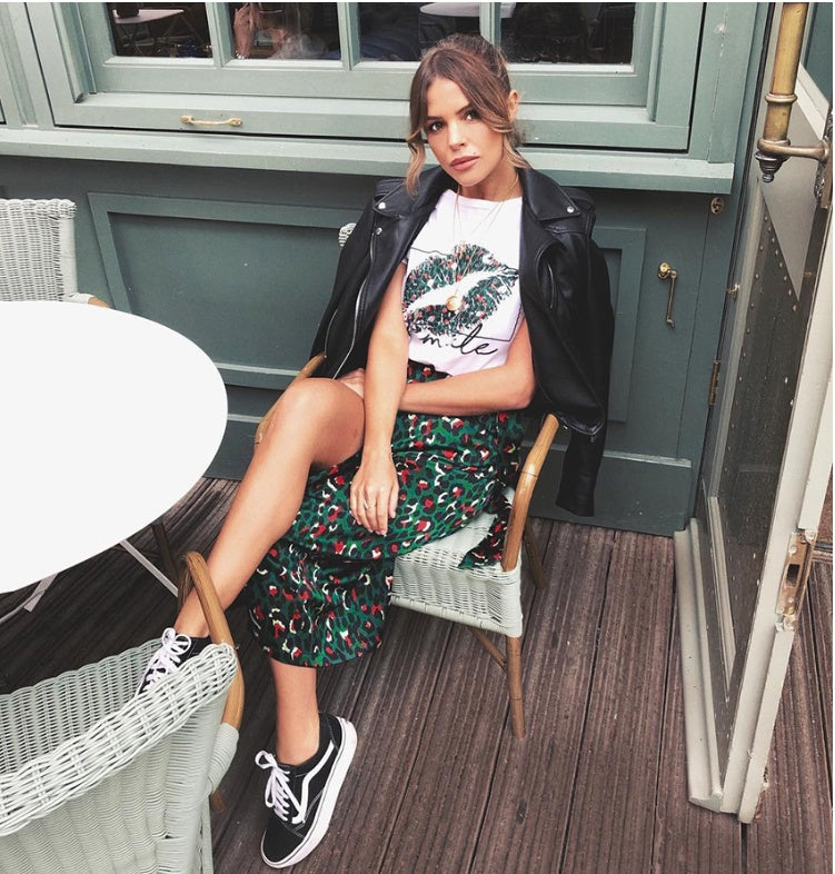 Apportez une touche audacieuse et tendance à votre look avec cette jupe longue à imprimé léopard revisité. Son motif dynamique capte immédiatement le regard, ajoutant du caractère à votre tenue tout en restant élégante. Elle est idéale pour celles qui aiment affirmer leur style sans compromis sur le confort.