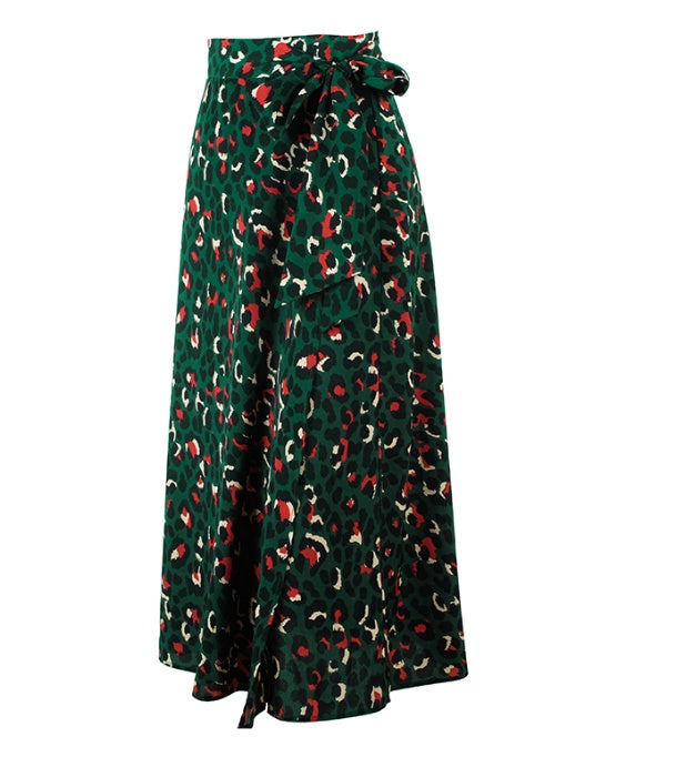 Jupe Longue Portefeuille à Imprimé Léopard Stylisé